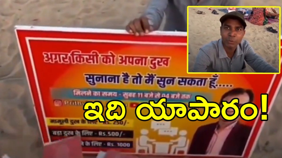 🚨 ముంబై బీచ్ వైరల్: మనిషి సమస్యలను వినడానికి ప్రజలను వసూలు చేస్తాడు.
