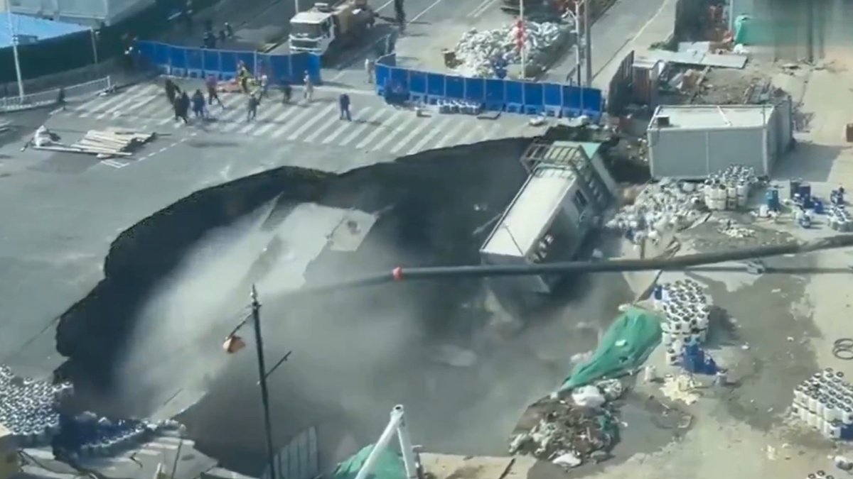 రోడ్డును రెండు వైపులా నిలిపివేసి, దాని పక్కనే నిర్మాణ పనులు కొనసాగుతున్న దృశ్యాలు సీసీటీవీ రికార్డుల్లో చూడొచ్చు. ఒకవైపు నిర్మాణ సామాగ్రి, తాత్కాలిక కేంద్రాలు, మరోవైపు పదుల సంఖ్యలో కార్మికులు అక్కడి సైట్‌లో పని చేస్తుండటం ఇందులో రికార్డు అయింది. అదే సమయంలో ఉన్నట్టుండి భూమి కుంగిపోయింది. మొదట రోడ్డు మొత్తం బీటలు వారింది. ఆ తర్వాత ఓ భారీ గుంత ఏర్పడింది. భూమి కుంగుతున్నప్పుడు కన్ స్ట్రక్షన్ సైట్ లో ఉన్న భారీ నిర్మాణ సామాగ్రి మొత్తం అందులో పడిపోయింది.